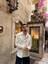 Men's Solid Color Ruffle Patchwork Long Sleeve Shirt SKUL42286
