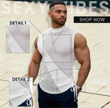 Men's Sheer Mesh Cowl Neck Long Sleeve T-shirt SKUL41054